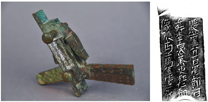 延熙十六年四月廿日,中作部典□□遂緒、吏李飛、□像楊汲□、工楊茗作,立取,重二斤五兩(武侯祠博物館館藏)