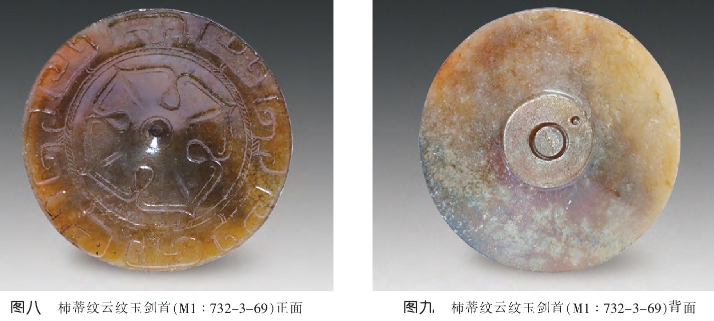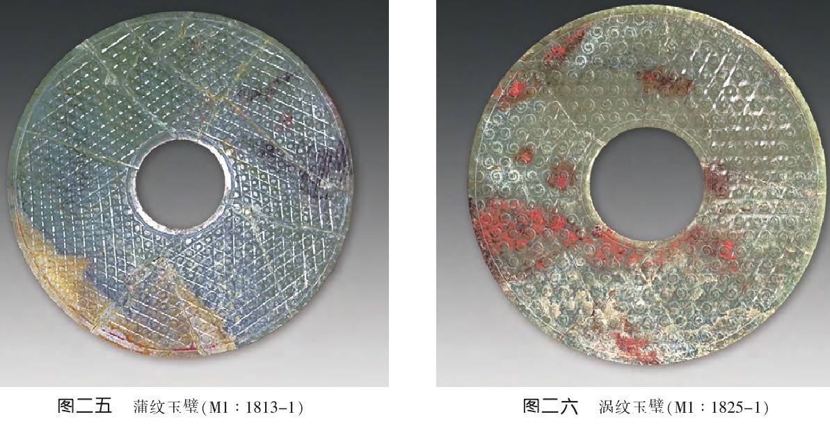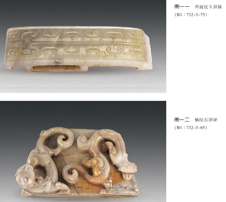 出土的玉器以成組的玉佩、器蓋紐和嵌餘為主,嵌飾又分為人飾和物飾,出土各種玉壁、石圭、玉環、玉佩,各種玉劍飾及大量片狀玉材和半成品玉片,另有一枚玉印。