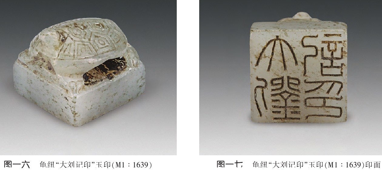 龜紐玉印,繆篆陰刻〝大劉印記〞四字。